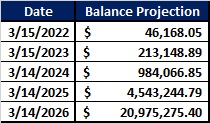 Projection: How much your $10,000 would grow to if you start following today based on current 362% annual compound rate.
