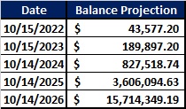 Projection: How much your $10,000 would grow to if you start following today based on current 336%(No Short) annual compound rate.