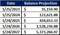 Projection: How much your $10,000 would grow to if you start following today based on current 252%(No Short) annual compound rate.